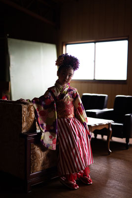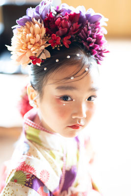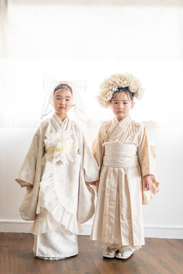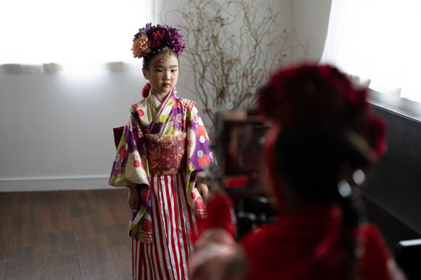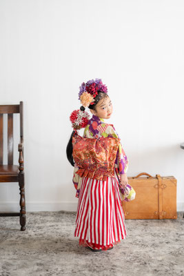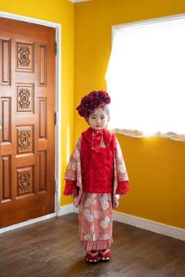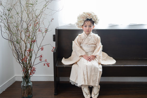 ハムニコさんの着物を着て、オシャレなアトリエでかわいいかわいいお子様の七五三撮影をしませんか。